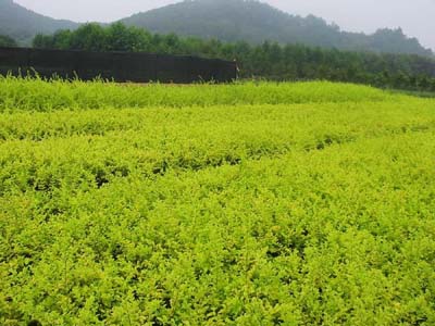金叶女贞由加州金边女贞与欧洲女贞杂交培育而成,高2~3米,冠幅1.5~2米。叶片较大叶女贞稍小,单叶对生,椭圆形或卵状椭圆形,长2~5厘米。核果阔椭圆形,紫黑色。金叶女贞叶色金黄,尤其在春秋两季色泽更加璀璨亮丽。